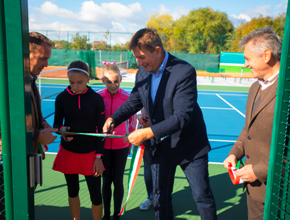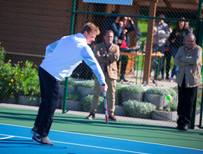 A teniszpálya átadására érkező vendégek előtt a területet megnyitják.